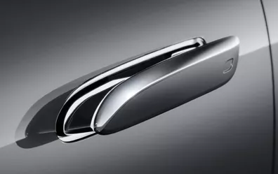 Sua chave, com mais conforto: com o pacote conforto KEYLESS-GO[1], você pode ligar e travar seu veículo simplesmente carregando sua chave com você, ou com um smartphone compatível. As maçanetas da porta com fixação de superfície contidas no respectivo pacote KEYLESS-GO aparecem automaticamente assim que você se encontra imediatamente nas proximidades do veículo, e são ocultadas novamente assim que você o trancar.