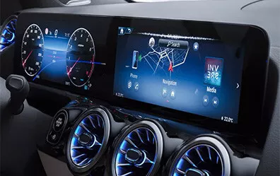 Configure o seu Infotainment pessoal com o novo sistema multimídia MBUX. Escolha entre vários estilos de exibição de "desconcertado" a "desportivo" e decida entre a entrada de voz ou a função de toque. Graças à inteligência artificial, a emissora favorita é lembrada – e o caminho mais rápido para o trabalho.