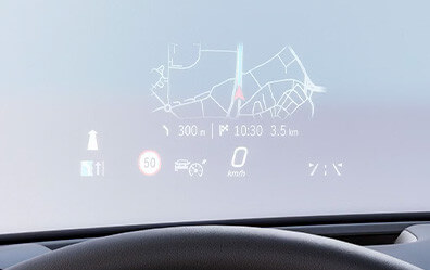As melhores chances para um prazer de condução esportiva e uma sensação de condução excepcional: o Head-up display transforma o seu para-brisa em um posto de comando digital fascinante. Assim, você tem as informações importantes sempre ao alcance dos olhos. Você pode dedicar toda a sua atenção à via e ao que acontece no trânsito à sua frente. A altura e a luminosidade do display podem ser ajustadas conforme sua preferência.